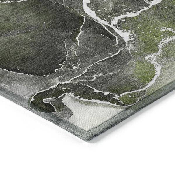 Green 8 ft. Round Abstract Indoor / Outdoor Area Rug