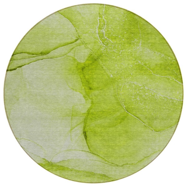 Green 8 ft. Round Abstract Indoor / Outdoor Area Rug