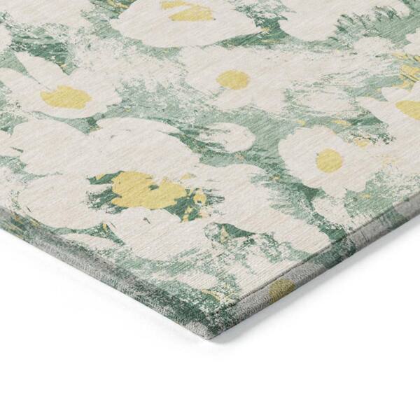 Green 9 ft. x 12 ft. Woven Floral Rectangle Indoor/Outdoor Area Rug