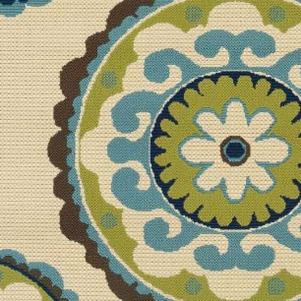 Green, Ivory 7 ft. x 10 ft. Loomed Polypropylene Rectangle Indoor/Outdoor Area Rug