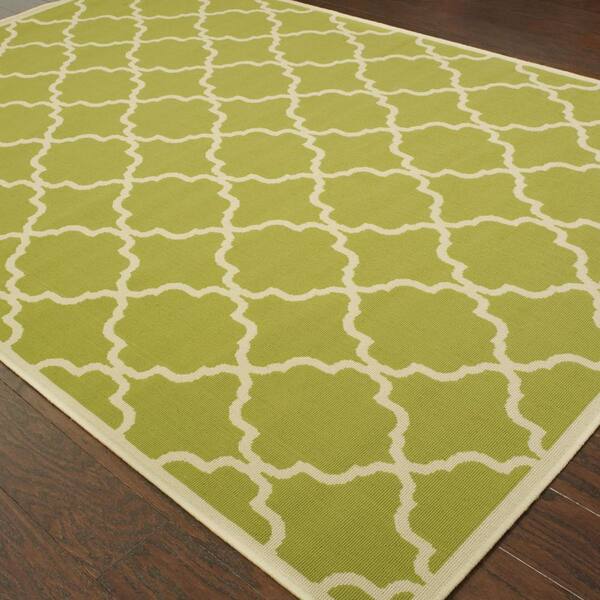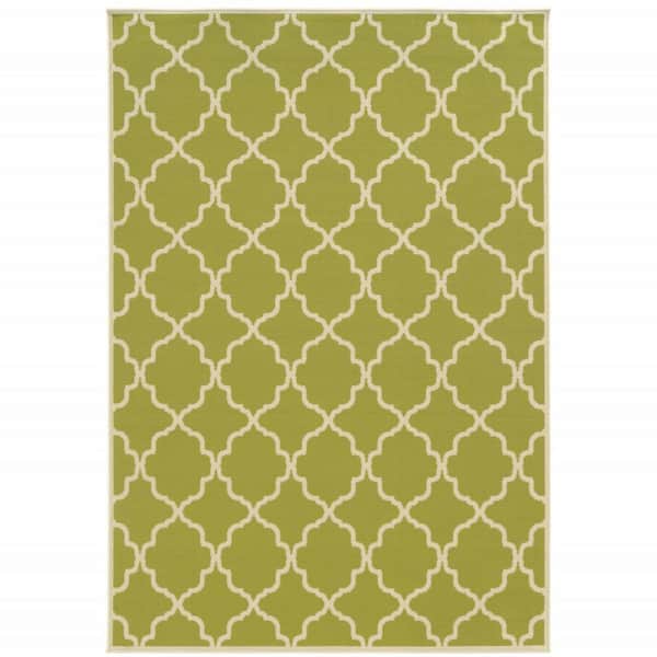Green, Ivory 9 ft. x 13 ft. Loomed Geometric Polypropylene Rectangle Indoor/Outdoor Area Rug