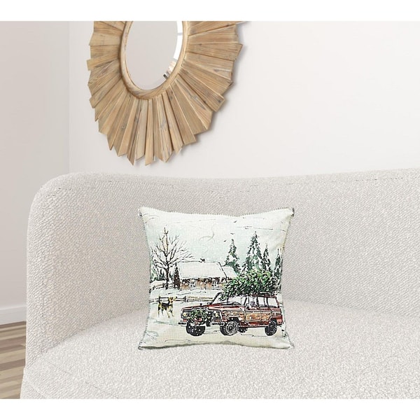 Green, White Solid Polyester 18 in. x 18 in. Throw Pillow