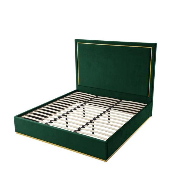 Green Wood Frame Queen Panel Bed with Upholstered