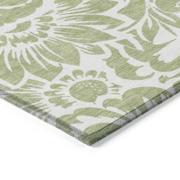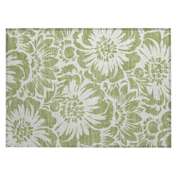 Green and Ivory 2 ft. x 3 ft. Woven Floral Rectangle Indoor/Outdoor Area Rug