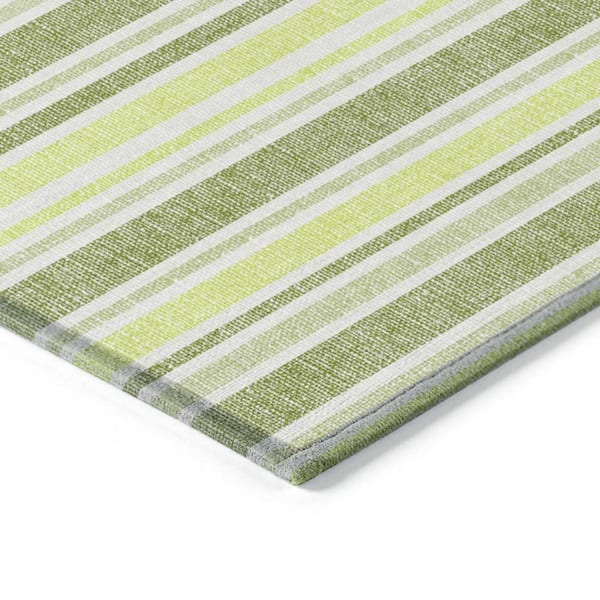 Green and Yellow 10 ft. x 14 ft. Woven Striped Polyester Rectangle Indoor/Outdoor Area Rug