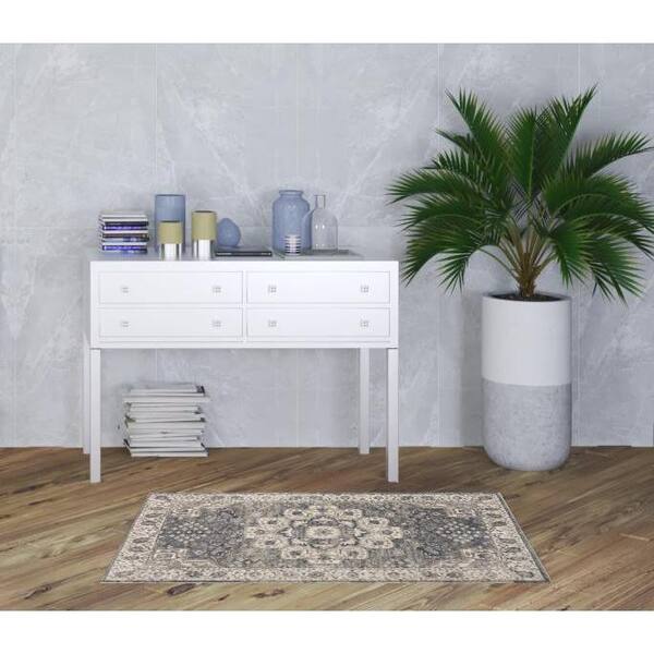 Grey and Ivory 3 ft. x 5 ft. Oriental Power Loom Non Skid Area Rug
