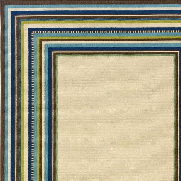 Ivory, Blue 4 ft. x 6 ft. Loomed Polypropylene Rectangle Indoor/Outdoor Area Rug