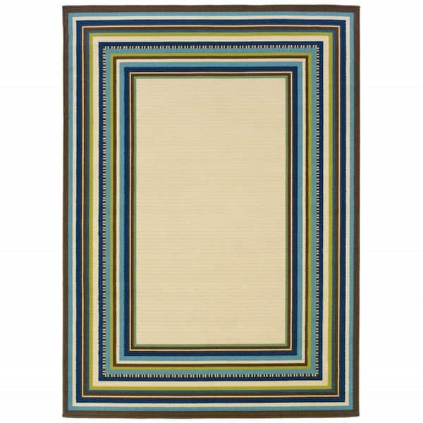 Ivory, Blue 5 ft. x 8 ft. Loomed Polypropylene Rectangle Indoor/Outdoor Area Rug