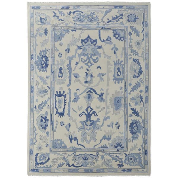 Ivory, Blue Floral 8 ft. x 12 ft. Area Rug