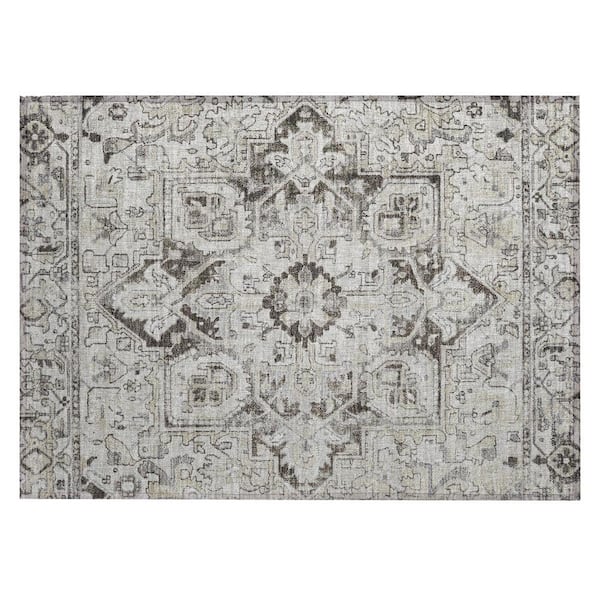 Ivory and Dark Brown 2 ft. x 3 ft. Woven Oriental Rectangle Indoor/Outdoor Area Rug