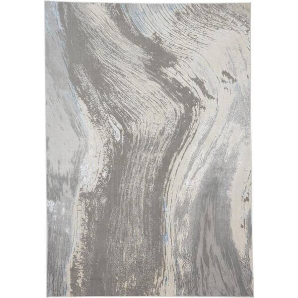 Ivory and Silver and Gray Abstract 12 ft. x 15 ft. Area Rug