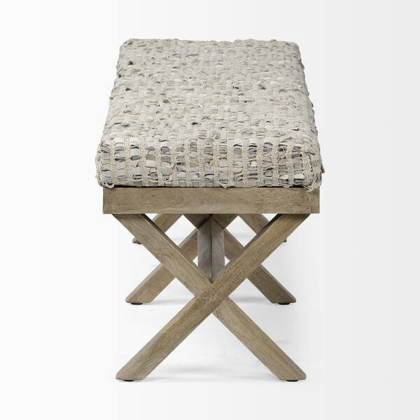 Light Brown Base with Beige-Toned Rectangular Woven Leather Cushion Accent Bench 15 in. x 16 in. x 50 in.