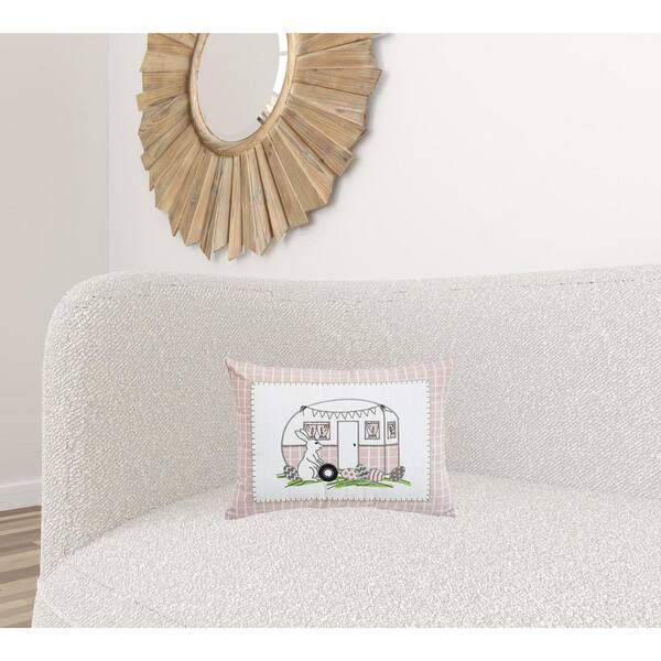 Light Pink Plaid Cotton 13 in. x 18 in. Throw Pillow