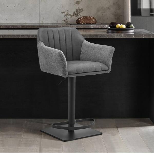 Lush Grey Faux Leather and Fabric Adjustable Swivel Stool