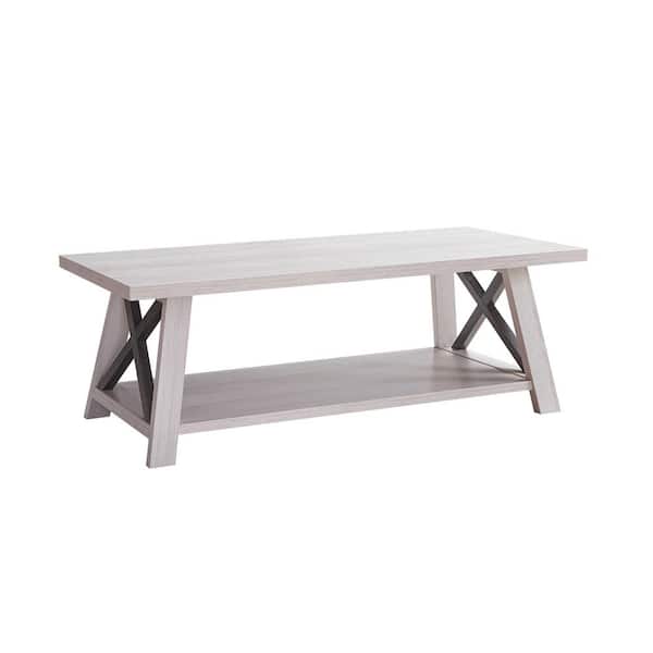 Mariana 47 in. Gray and Black Rectangle Wood Coffee Table with Shelves, and Storage