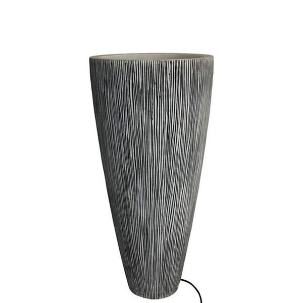 Mariana Abstract Gray Sandstone Ribbed Long Conical Planter with Light