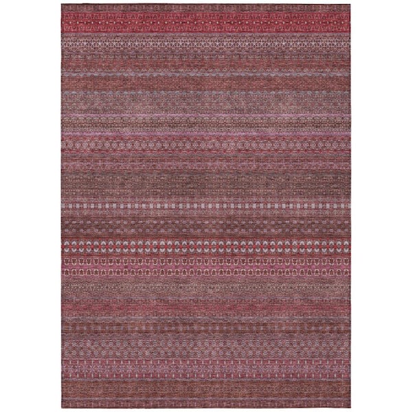 Merlot 5 ft. x 8 ft. Woven Striped Polyester Rectangle Indoor/Outdoor Area Rug