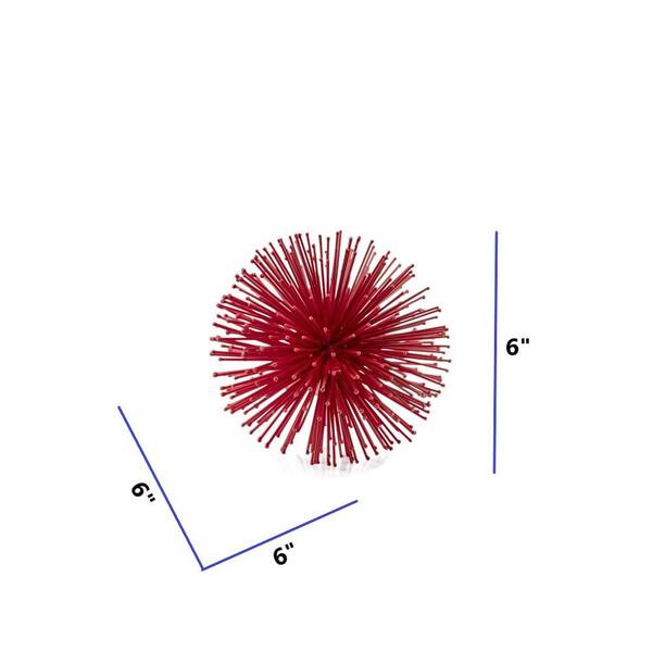 Metal Red Decorative Urchin Spiky Sphere Tabletop Sculpture
