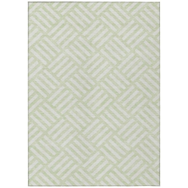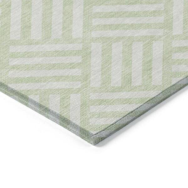 Mint Green, Ivory 10 ft. x 14 ft. Woven Geometric Polyester Rectangle Indoor/Outdoor Area Rug