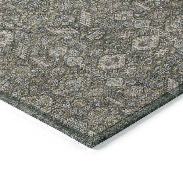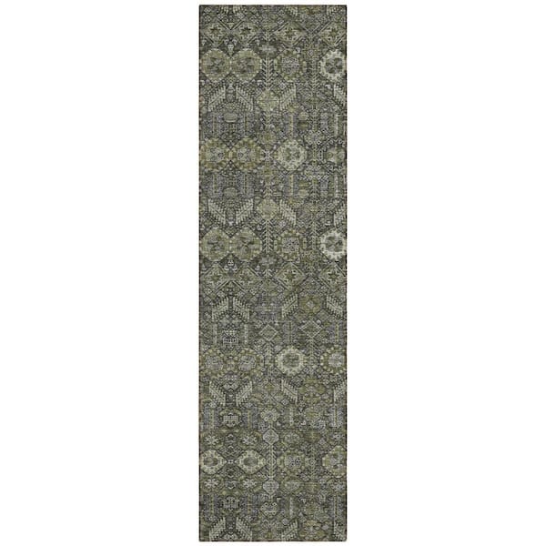 Moss Green and Gray 2 ft. x 8 ft. Woven Floral Runner Indoor/Outdoor Area Rug