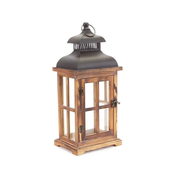 Natural, Black Metal Candle Lantern Set of 2-Pack