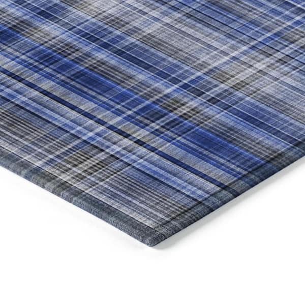Navy Blue 2 ft. x 8 ft. Woven Plaid Runner Indoor/Outdoor Area Rug
