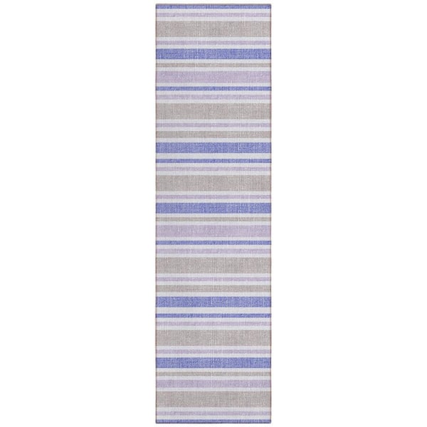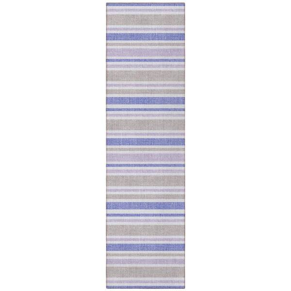 Navy Blue 2 ft. x 8 ft. Woven Striped Polyester Runner Indoor / Outdoor Area Rug