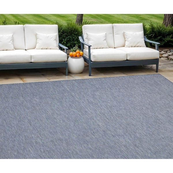 Navy Blue 9 ft. x 12 ft. Woven Abstract Polyester Rectangle Indoor/Outdoor Area Rug