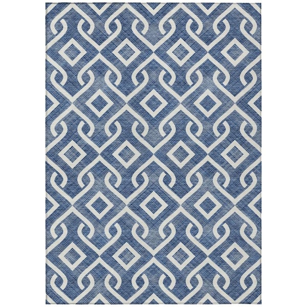 Navy Blue, Ivory 3 ft. x 5 ft. Woven Geometric Polyester Rectangle Indoor/Outdoor Area Rug