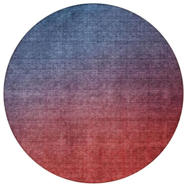 Navy Blue, Red, Eggplant 8 Round ft. Woven Abstract Polyester Round Indoor / Outdoor Area Rug
