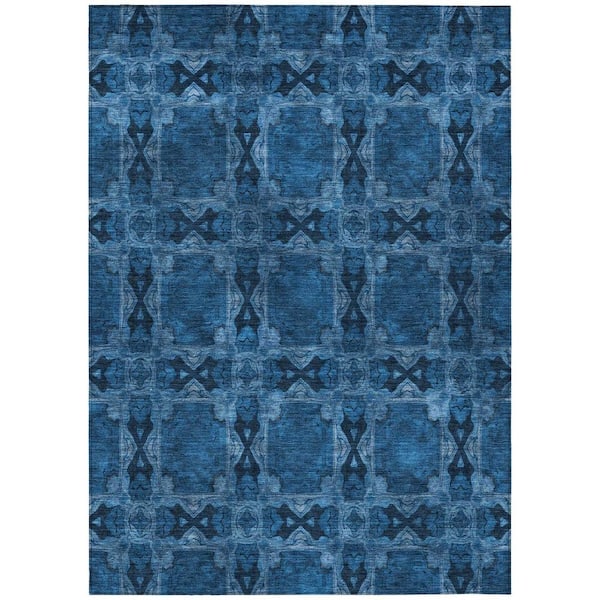 Navy and Gray 10 ft. x 14 ft. Woven Floral Medallion Rectangle Indoor/Outdoor Area Rug