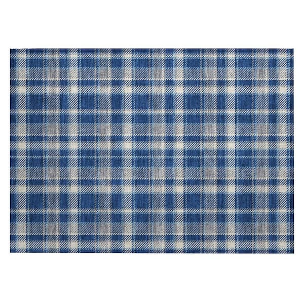 Navy and Ivory 2 ft. x 3 ft. Woven Plaid Rectangle Indoor/Outdoor Area Rug