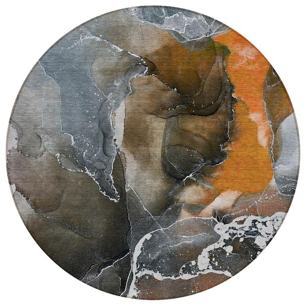 Orange 8 ft. Round Abstract Indoor / Outdoor Area Rug