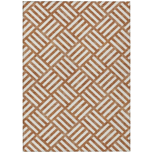 Orange, Ivory 10 ft. x 14 ft. Woven Geometric Polyester Rectangle Indoor/Outdoor Area Rug