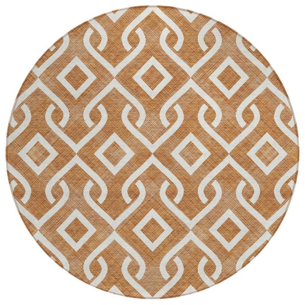 Orange, Ivory 8 ft. Round Woven Geometric Polyester Round Indoor/Outdoor Area Rug