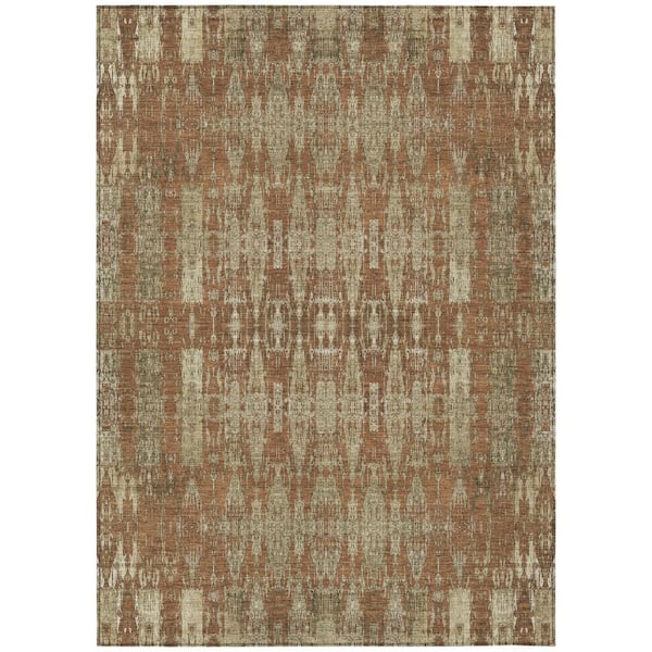Orange, Taupe, Beige 5 ft. x 8 ft. Woven Moroccan Polyester Rectangle Indoor / Outdoor Area Rug