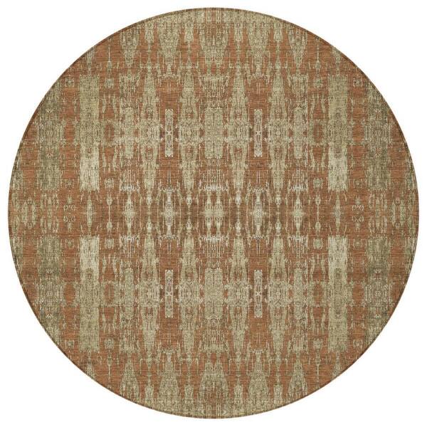 Orange, Taupe, Beige 8 Round ft. Woven Moroccan Polyester Round Indoor / Outdoor Area Rug