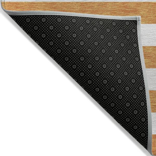 Orange and White 8 ft. Round Woven Striped Polyester Round Indoor/Outdoor Area Rug