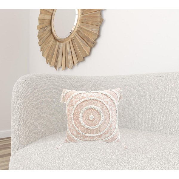 Peach, White Geometric Polyester 18 in. x 18 in. Throw Pillow
