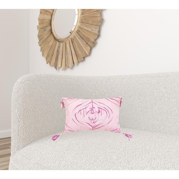 Pink, White Abstract Polyester 13 in. x 20 in. Throw Pillow