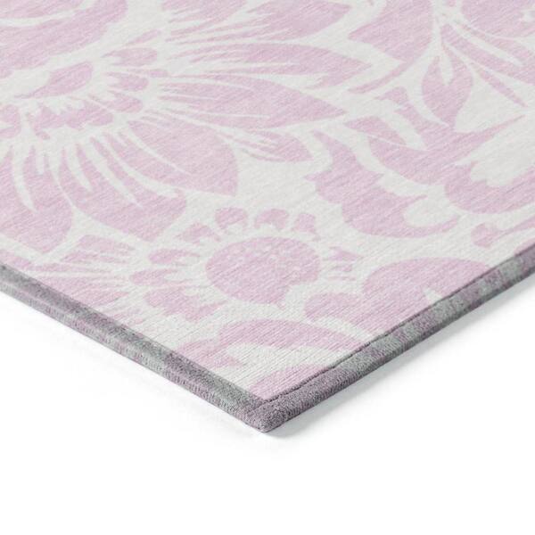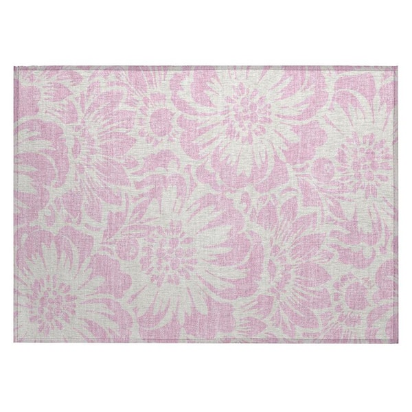 Pink and Ivory 2 ft. x 3 ft. Woven Floral Rectangle Indoor/Outdoor Area Rug