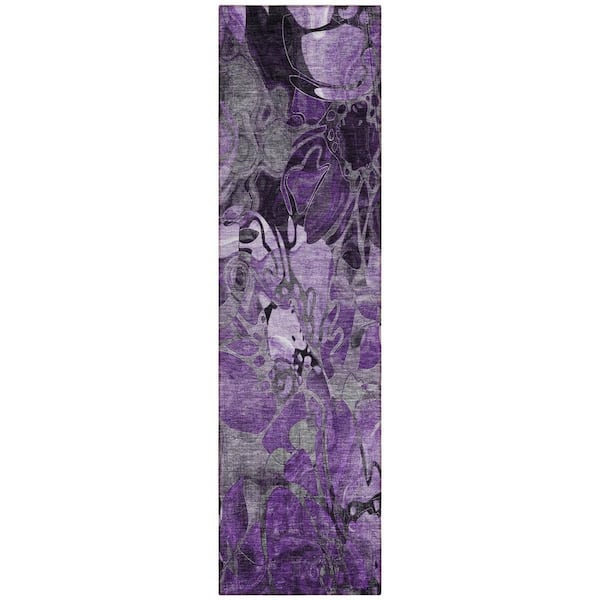 Purple 2 ft. x 8 ft. Woven Abstract Polyester Runner Indoor / Outdoor Area Rug