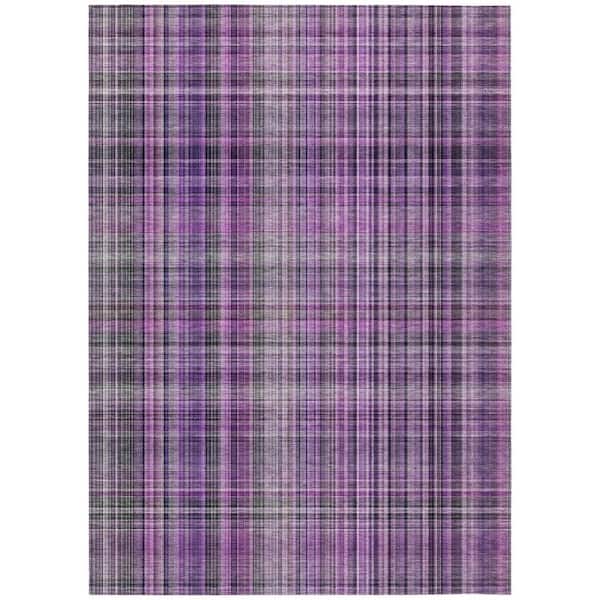 Purple, Gray 5 ft. x 8 ft. Woven Plaid Polyester Rectangle Indoor / Outdoor Area Rug