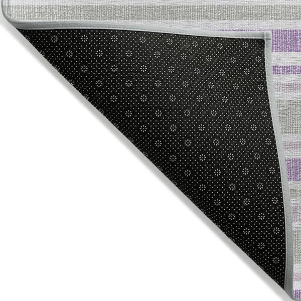 Purple, Gray, White 10 ft. x 14 ft. Woven Striped Polyester Rectangle Indoor / Outdoor Area Rug