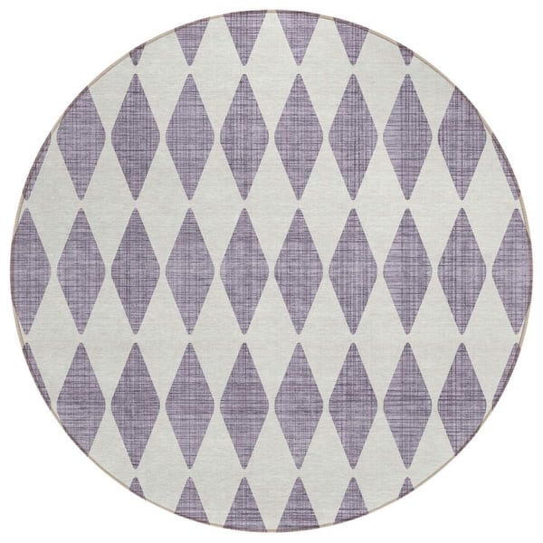 Purple, Lilac 8 Round ft. Woven Geometric Polyester Round Indoor / Outdoor Area Rug