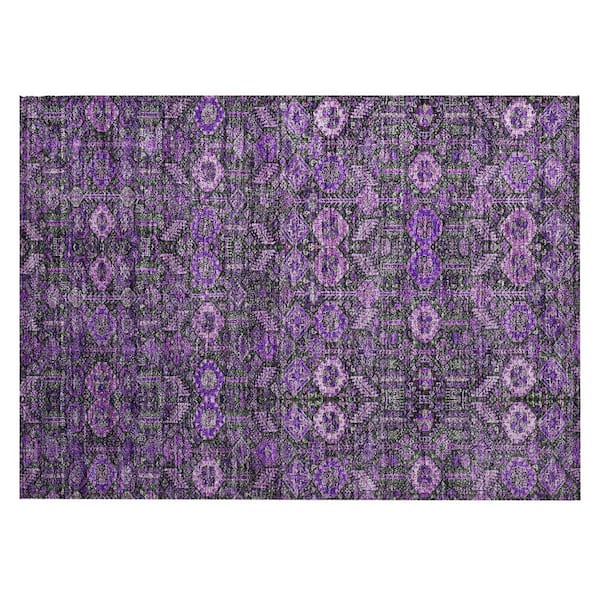 Purple and Green 2 ft. x 3 ft. Woven Floral Rectangle Indoor/Outdoor Area Rug