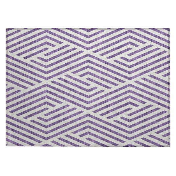 Purple and White 2 ft. x 3 ft. Woven Geometric Rectangle Indoor/Outdoor Area Rug