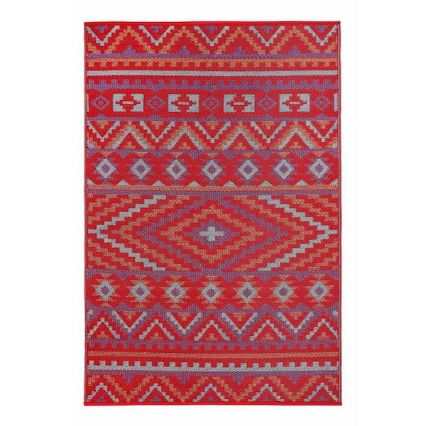 Red 3 ft. x 5 ft. Woven Geometric Polypropylene Rectangle Indoor/Outdoor Area Rug