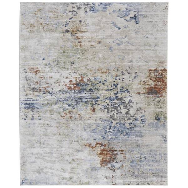 Red, Blue, Ivory 5 ft. x 8 ft. Abstract Area Rug