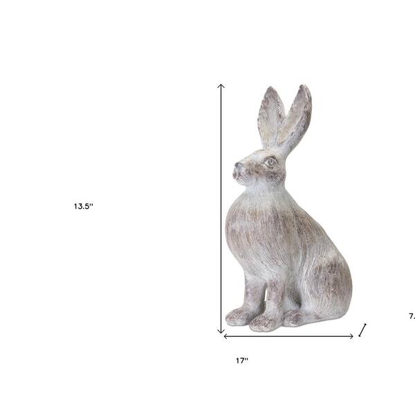 Resin White Washed Rabbit Tabletop Sculpture Set of 2